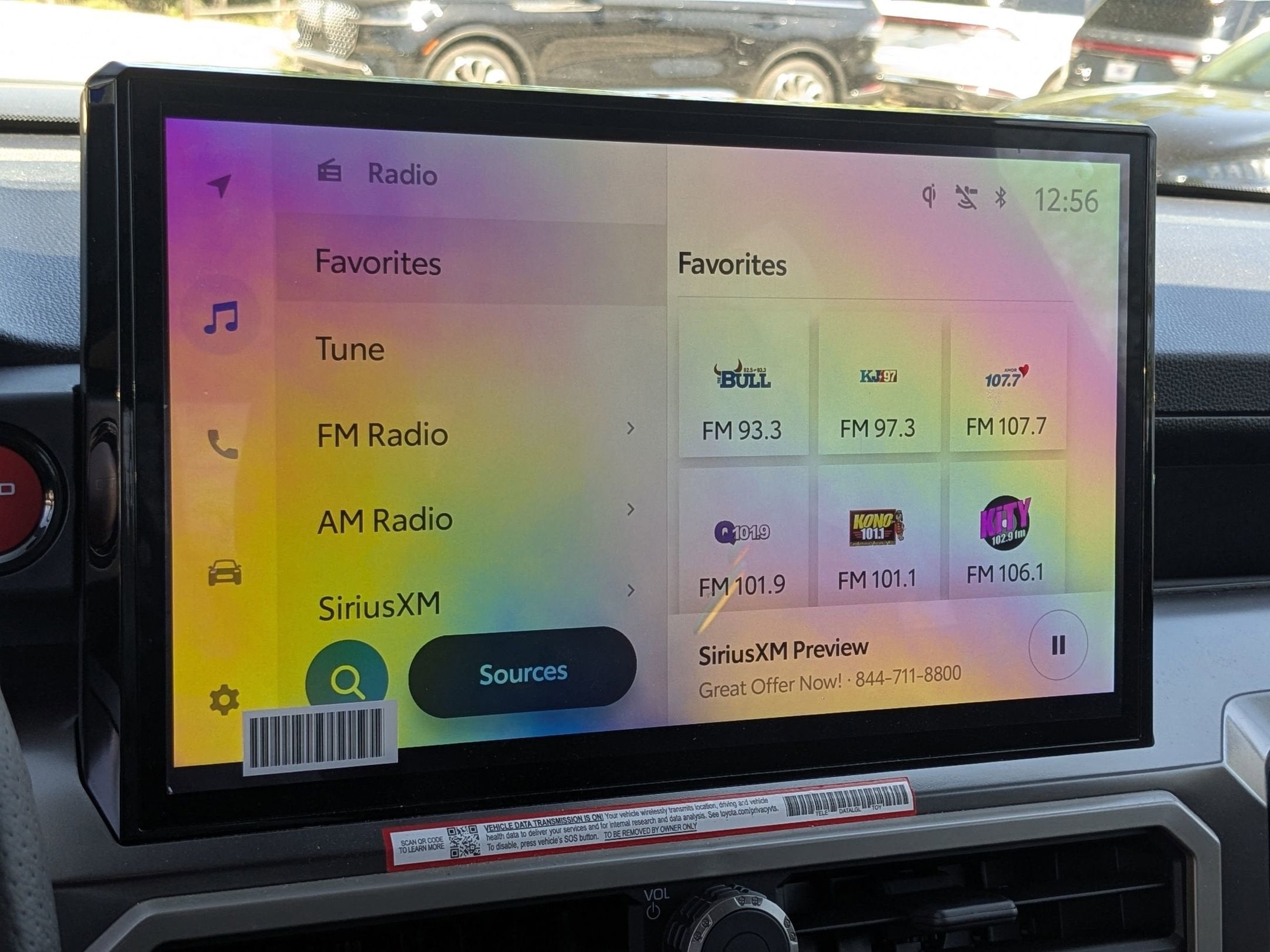 - Radio: 8" Toyota Audio Multimedia -inc: touchscreen, 6-speaker audio system, wireless Apple CarPlay and Android Auto compatibility and SiriusXM w/3-month Platinum Plan trial subscription, See toyota.com/audio-multimedia for details